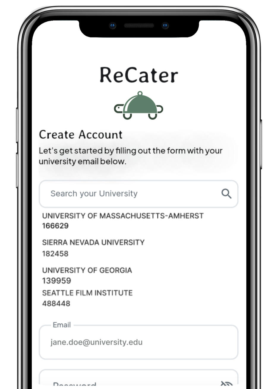 Our streamlined signup process makes joining ReCater effortless for students across U.S campuses.