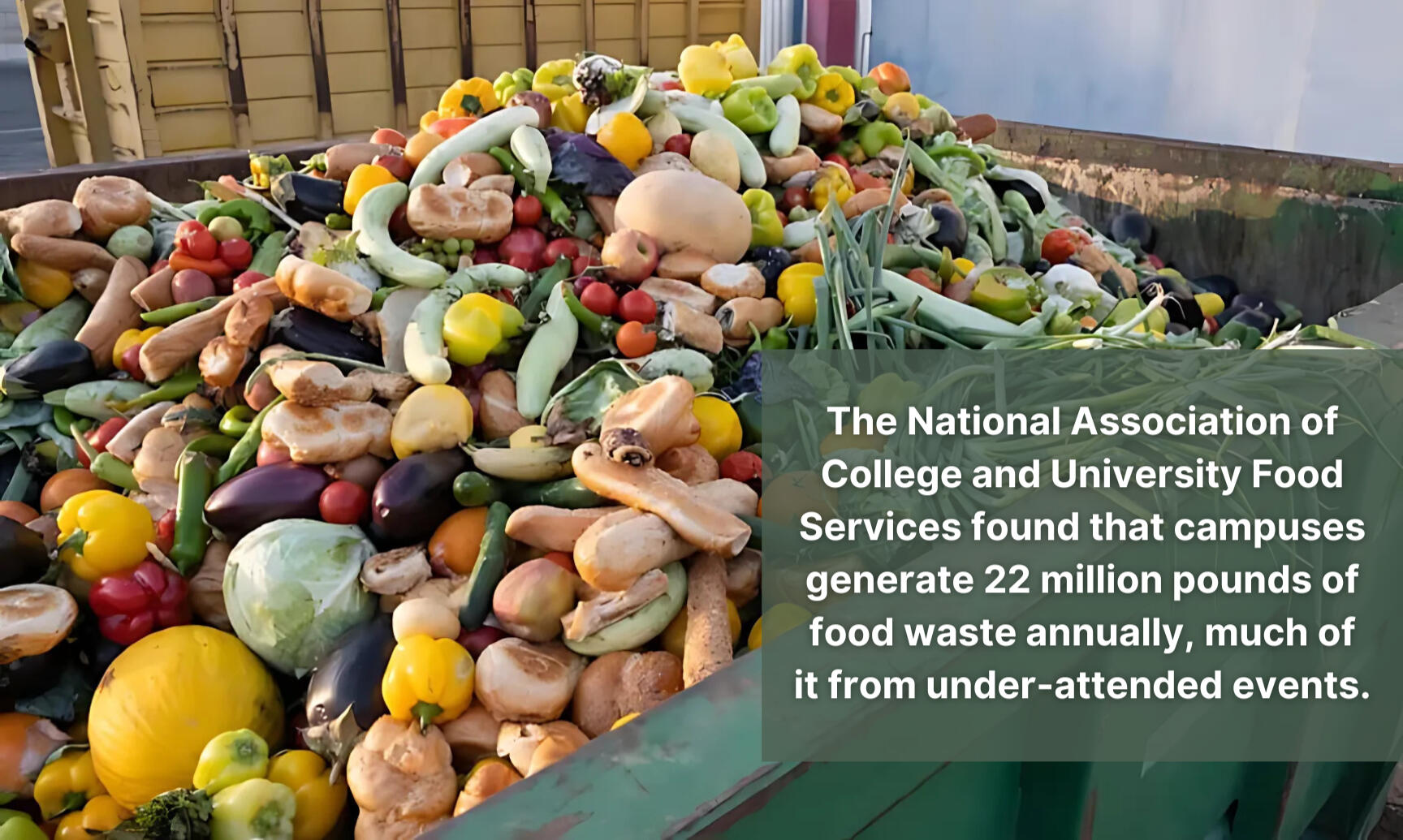 Catered food often lacks sustainable redistribution avenues and ends up in landfills, releasing methane, a greenhouse gas 25 times more potent than CO2 over a 100-year period. The EPA estimates that 30-40% of all food in the U.S. is wasted, contributing to 8% of global greenhouse gas emissions.